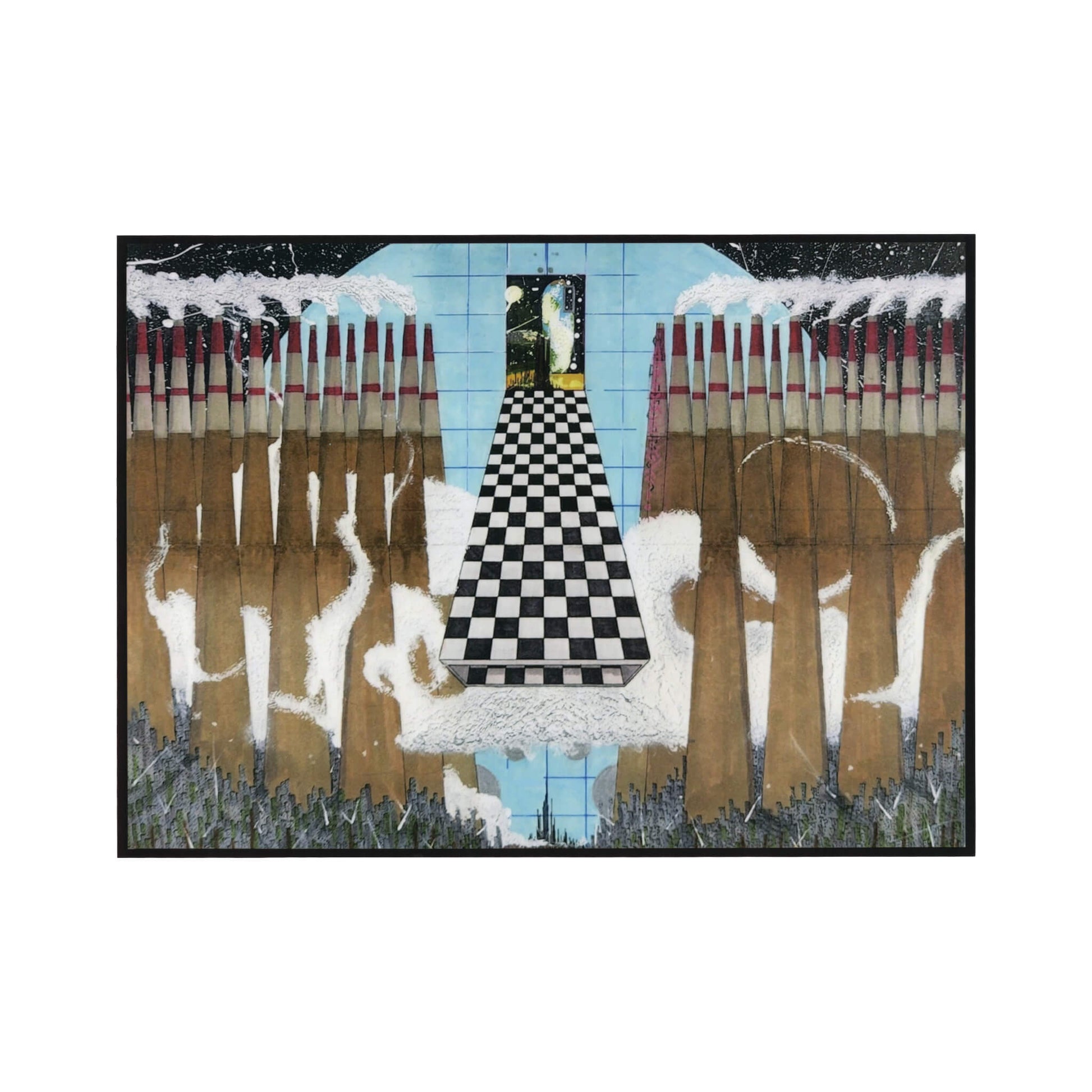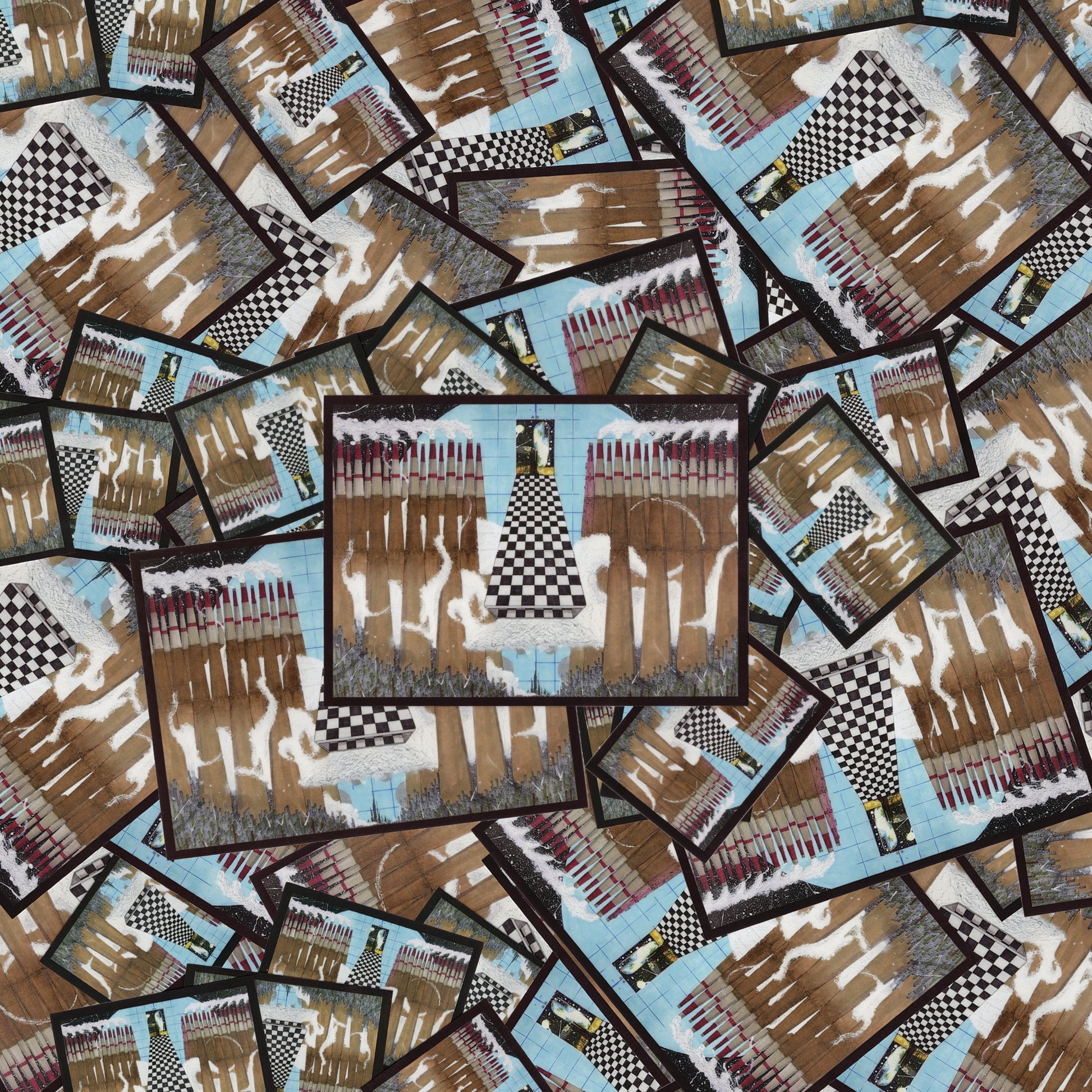 Medium: Marker, paint, and colored pencil on Avery 8165 Label. (originally was half of one but halves were re-attached).